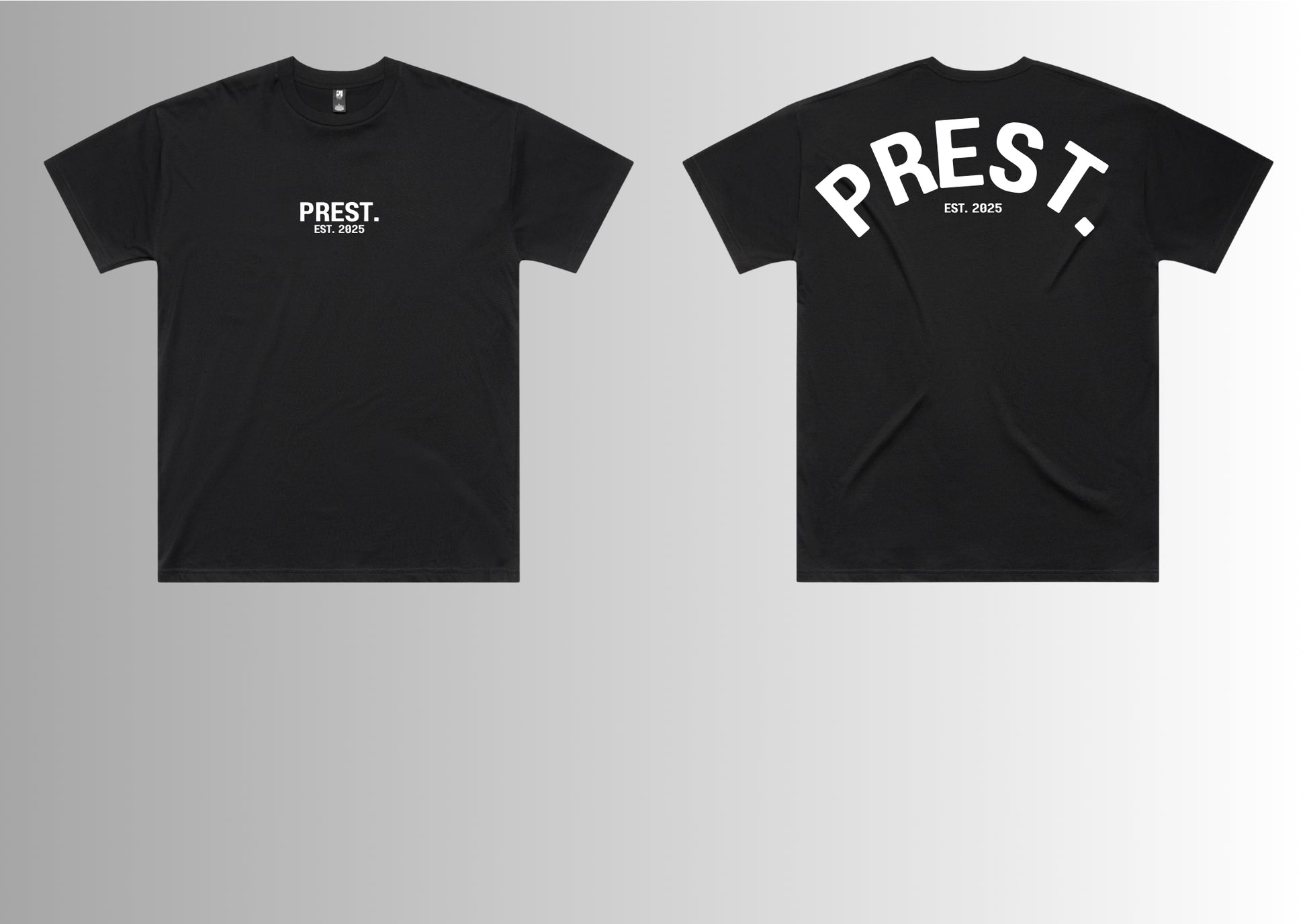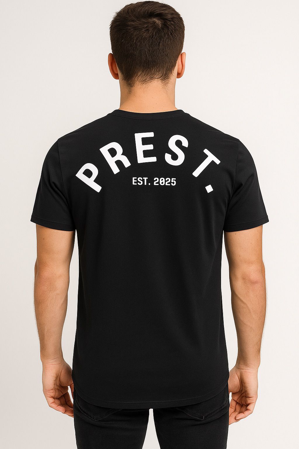 Make a bold statement with the PREST. Classic T-Shirt – a modern essential that blends simplicity with style. Crafted from combed cotton, this black T-Shirt delivers unmatched comfort, breathability, and durability for everyday wear. The clean, minimalistic front print showcases the “PREST.” logo and establishment year in crisp white, adding a contemporary edge to your casual wardrobe.